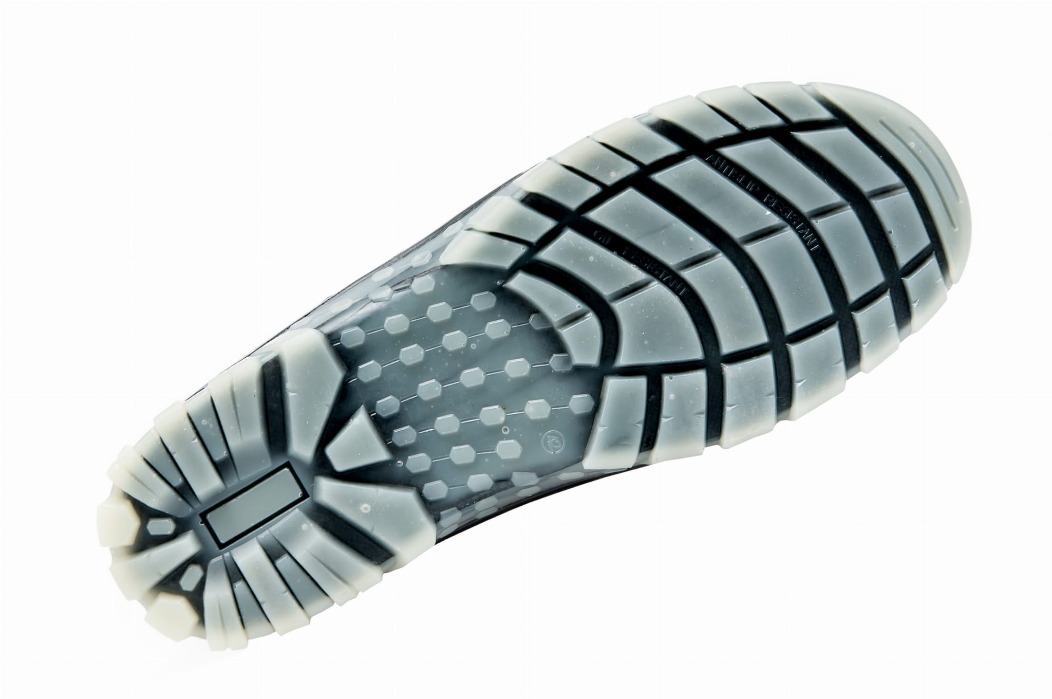 - Podeszwa PU/PU: dwugęstościowy poliuretan zapewnia twardą, odporną na ścieranie warstwę zewnętrzną oraz miękką, amortyzującą warstwę wewnętrzną. Podeszwa jest olejoodporna, antyelektrostatyczna i przeciwpoślizgowa.