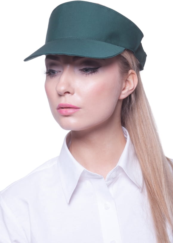 Praktyczne nakrycie głowy dla kelnerów, barmanów i sprzedawców. Wysoki przód daszka nie tylko chroni przed słońcem czy światłem, ale stanowi doskonałe miejsce na logo Twojej firmy.
