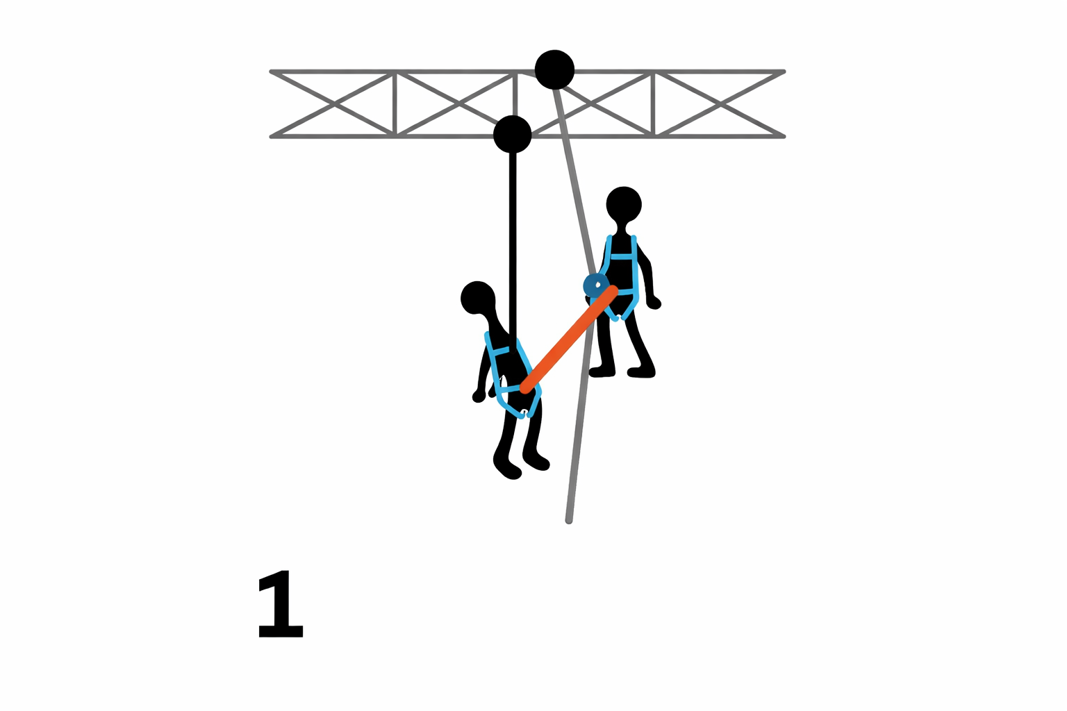 1. Zakotwiczony do uprzęży (element ruchomy), co daje przewagę mechaniczną MA 7:1 (teoretycznie)