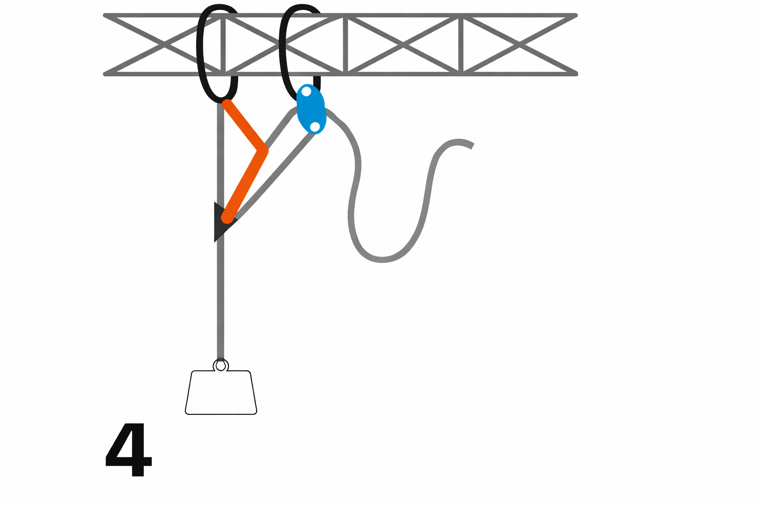 4. Zakotwiczony do stałej konstrukcji z przewagą mechaniczną MA 6:1 (teoretycznie)