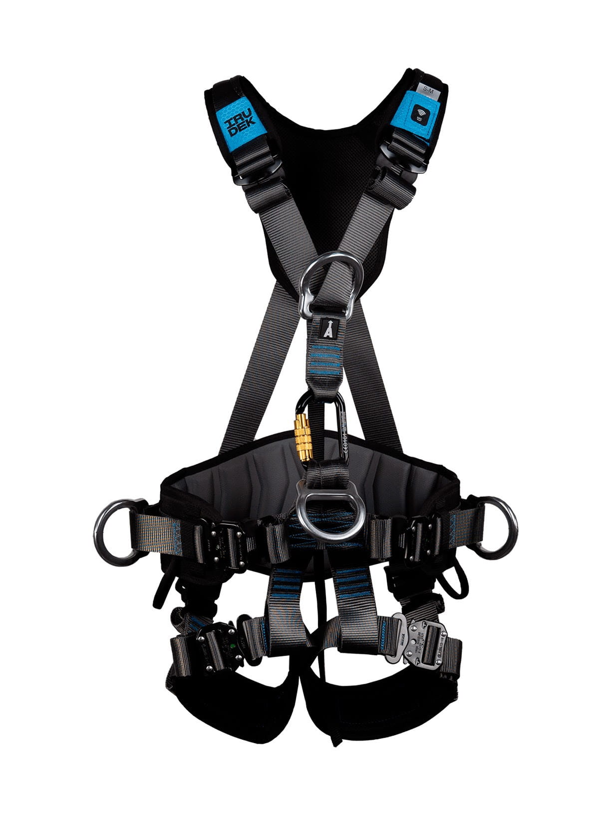 - Punkty zaczepowe: Grzbietowy, mostkowy oraz boczne (aluminiowe) do pozycjonowania.