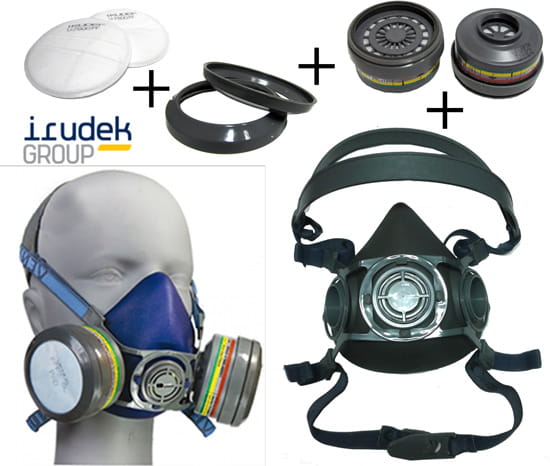 Kompletny zestaw do ochrony dróg oddechowych od marki Irudek (Hiszpania). Gotowe rozwiązanie chroniące przed szerokim spektrum gazów i pyłów, idealne dla lakierników i pracowników chemicznych.