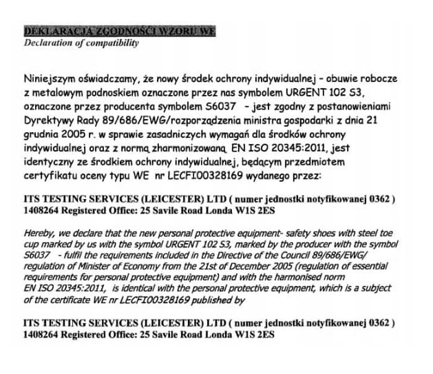 - Klasa ochrony obuwia S3