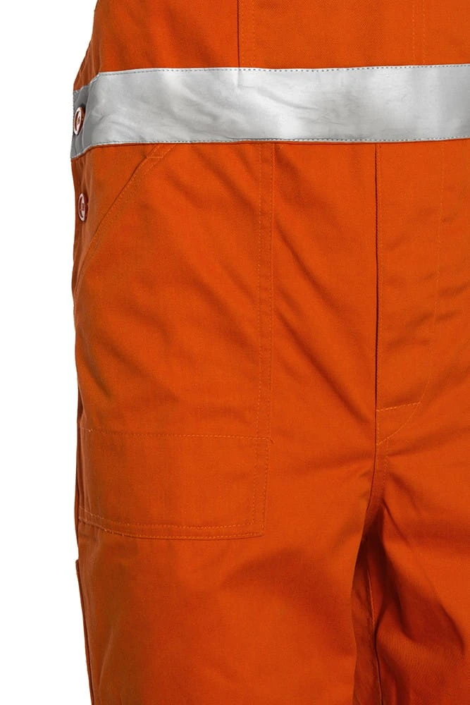- Widoczność: Podwójne pasy odblaskowe na nogawkach i w pasie.