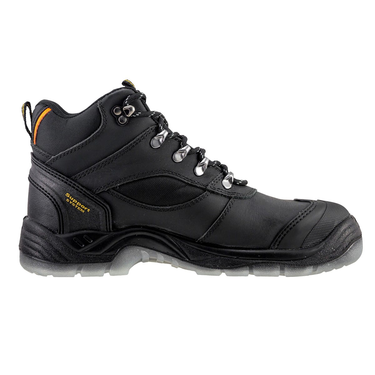 - Ochrona S1: Metalowy podnosek chroni palce, a zamknięty obszar pięty z absorpcją energii stabilizuje stopę i redukuje wstrząsy.